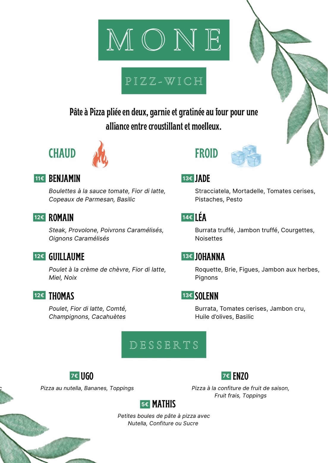 Attention, images appétissantes ! 📸 Retrouvez nos pizzas du moment, les coulisses de la cuisine et nos créations éphémères en exclusivité. Abonnez-vous pour ne pas perdre une miette de l’actualité Mone
